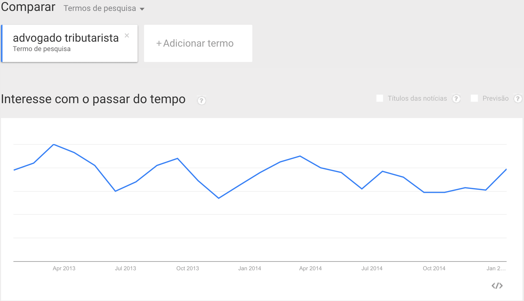 Apenas no mês de novembro de 2015 o termo “advogado tributarista” foi pesquisado por 1.000 (mil) pessoas diferentes. E pela imagem abaixo, os últimos dois anos foram idênticos.